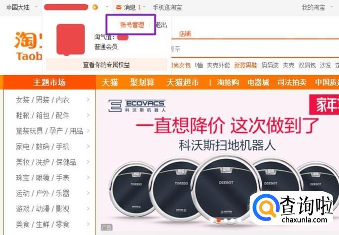 然后我们将鼠标移至左上角登陆的用户名处,弹出的界面,我们点击账号管理;
