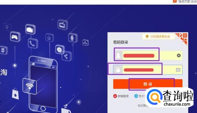 首先,我们在电脑上打开浏览器,登陆淘宝网站,输入账号、密码,然后点击登陆;
