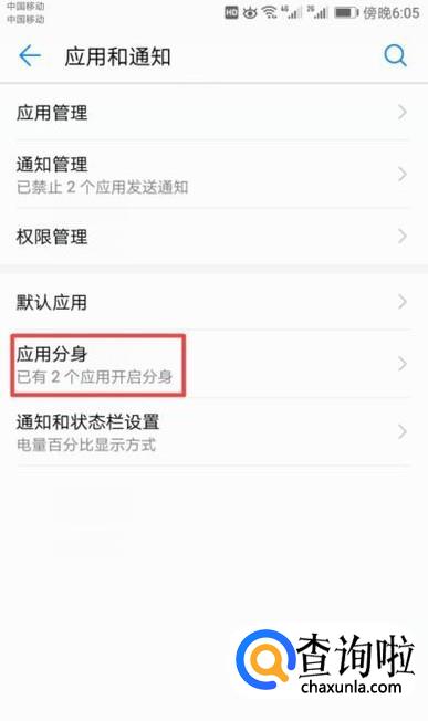 弹出的界面,我们点击应用分身;