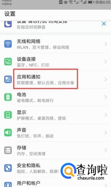 进入设置之后,我们点击里面的应用和通知;