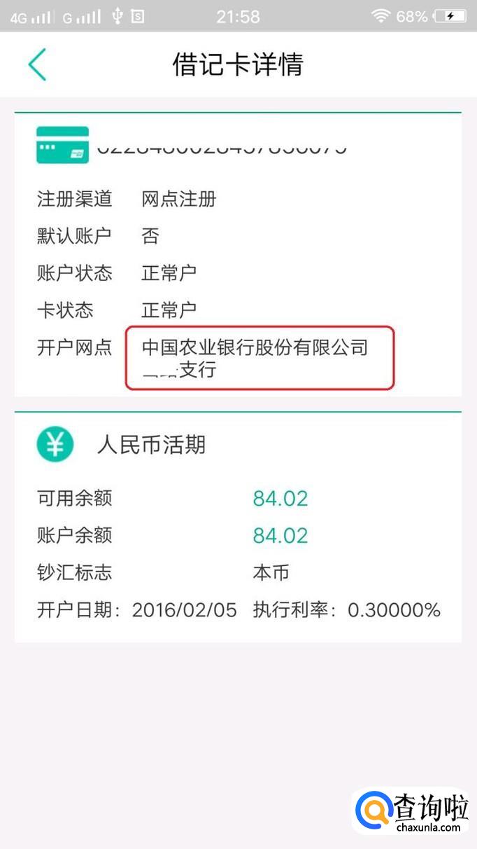 要查询开户网点,我们只需点击步骤3图中的银行卡卡号,就能进入该账户的详情页,看到开户网点了。