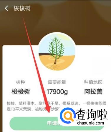 进入之后,选择一棵树木,点击“申请种树”即可获得新树苗,如图所示。