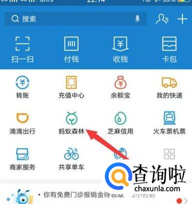 进入之后,点击“蚂蚁森林”,进入下一页面,如图所示。