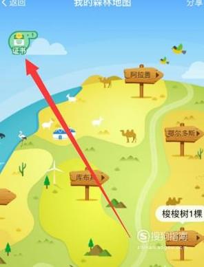 只有以前的树种完之后,就会得到证书,才能种下一棵树,点击“地图”,如图所示。