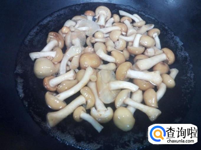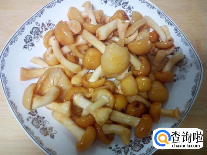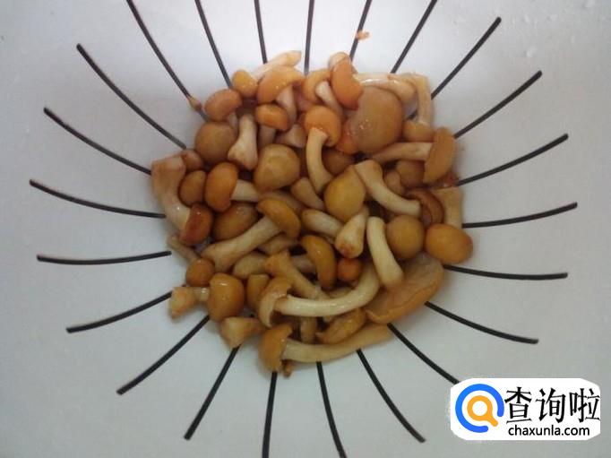 滑子蘑用水焯一下,水开后入锅10秒钟捞出,沥干水分。