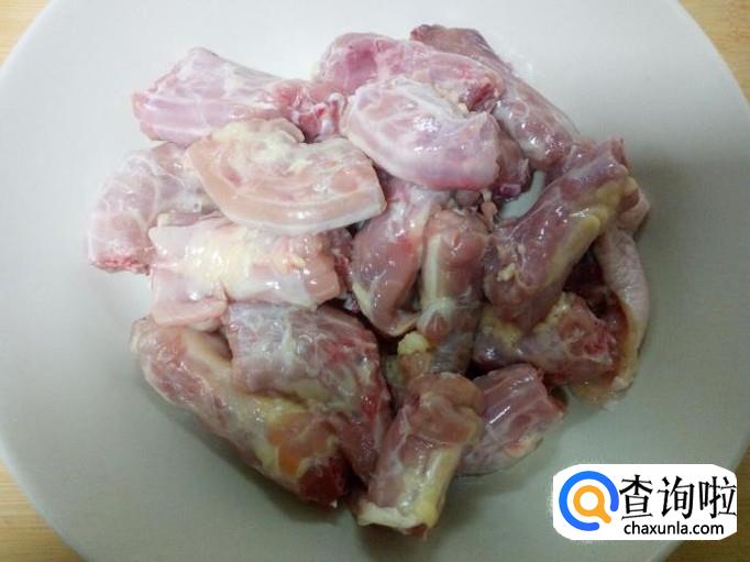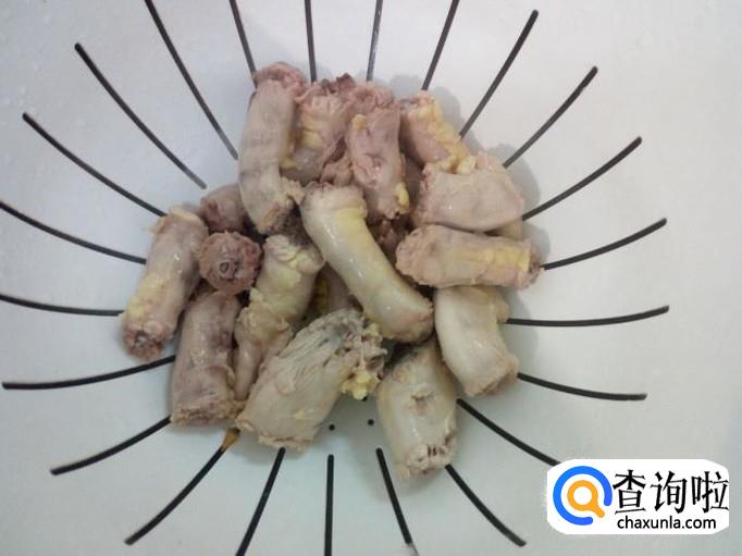 鸡脖子用水清洗干净,控干水分,剁成段。