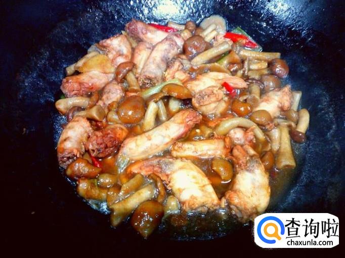 炖至少量汤汁时(用筷子插一下鸡脖子,可以插透),放入味精,转大火收汤(留少许汤汁),收汤汁后关火即可。