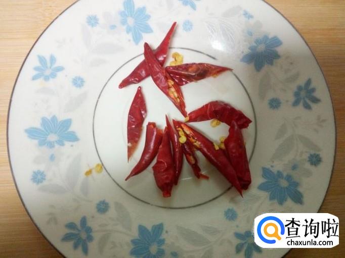 红干椒用水清洗干净,控干水分,斜刀切成段。切好葱,姜备用。