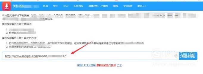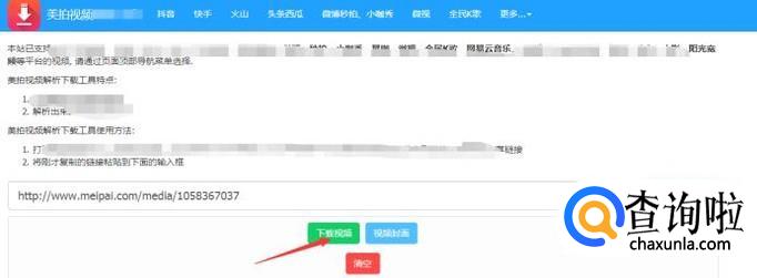 我们将视频链接复制在美拍视频下载框中,点击解析视频