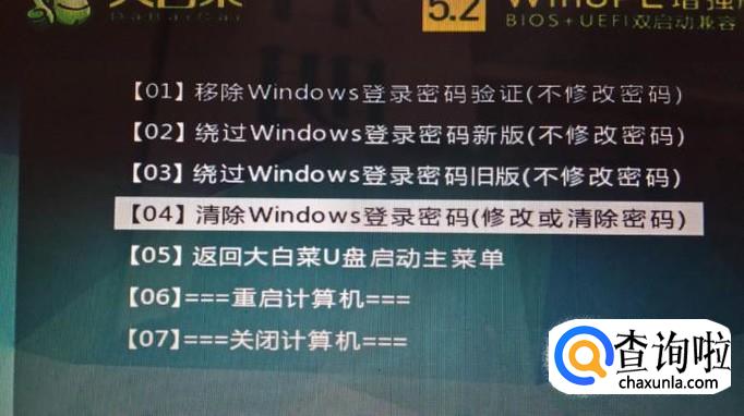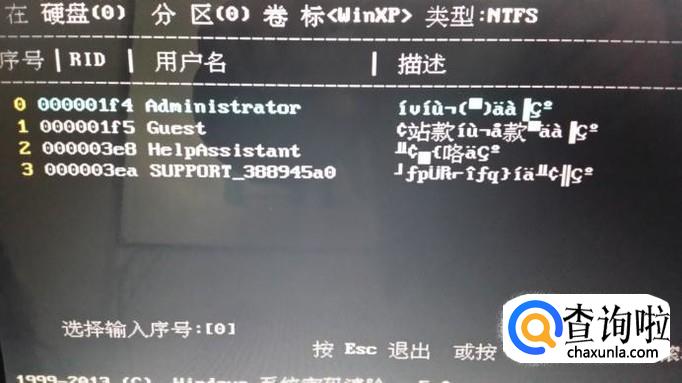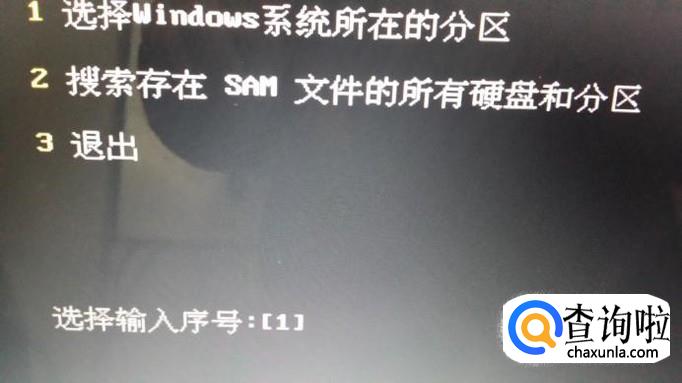 如果想把原来密码清除,就选菜单的“清除Windows登录密码”,按提示一步步进行,第一步输入“1”,回车,第二步输入“0”,回车,会搜索到密码文件,回车,在接下来的界面输入“0”,回车。