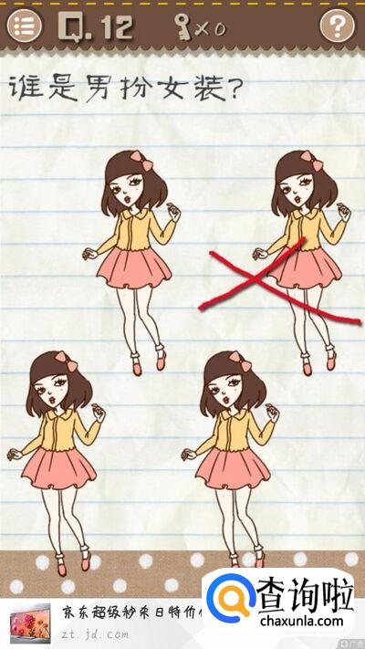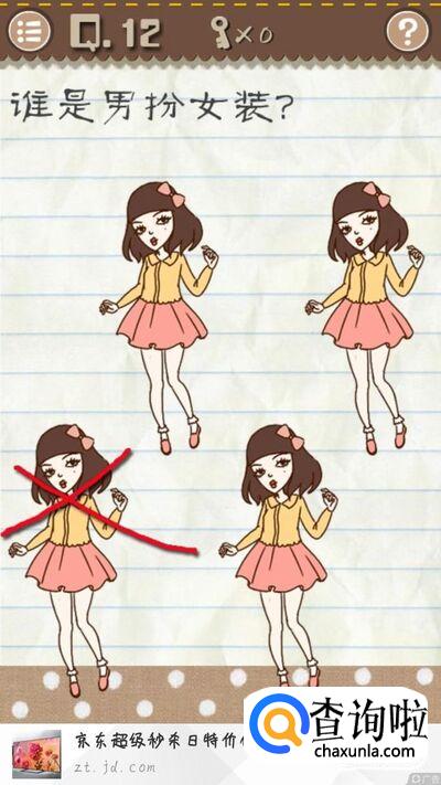 这一关的问题是:谁是男扮女装?,光是看图片觉得每一个都一样