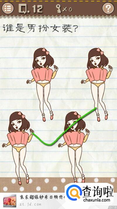 接着小编我想到一个方法,但是这个方法在现实生活中做起来可是很流氓的哦!将屏幕倒过来,每个女生的裙子就掀开了,这时候有点常识的一眼就可以看出谁是男扮女装了,点击那一个,然后我们就通关了