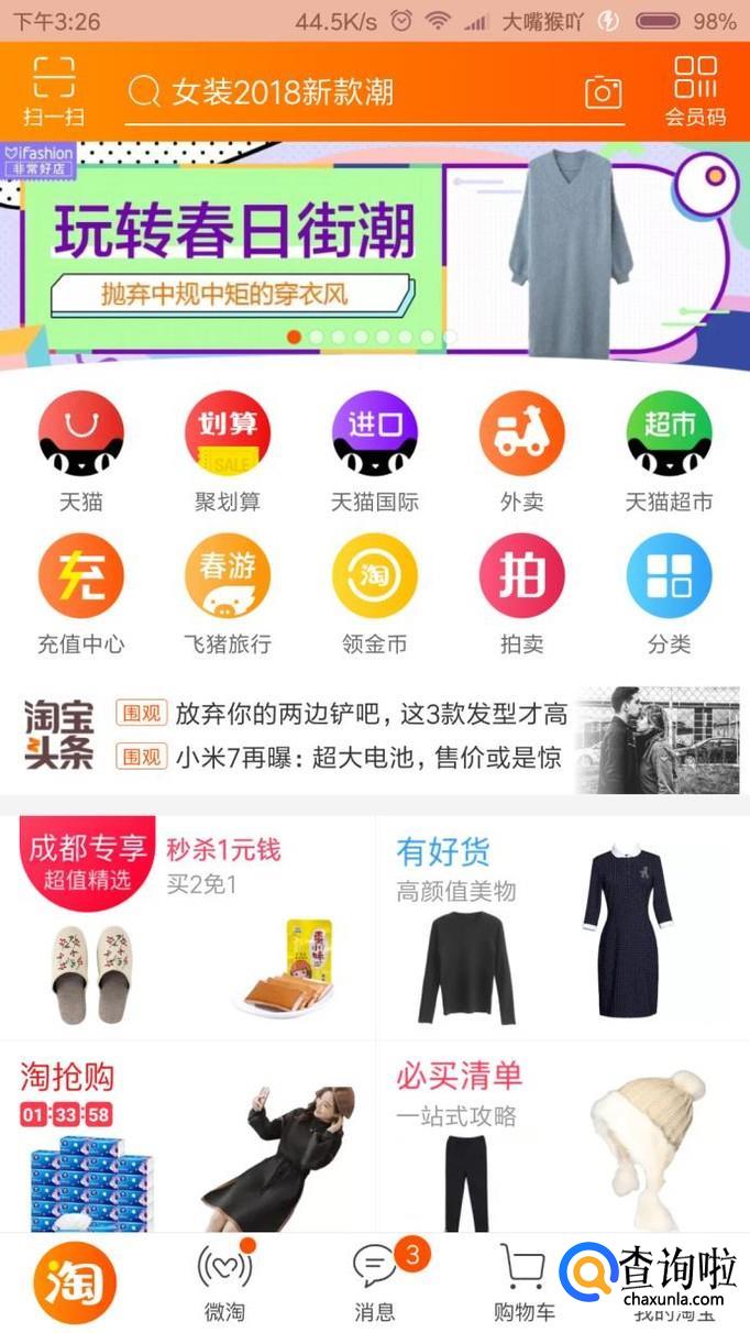 打开手机淘宝,一定要是最新版本的,不最新版本的,记得更新到最新版本!