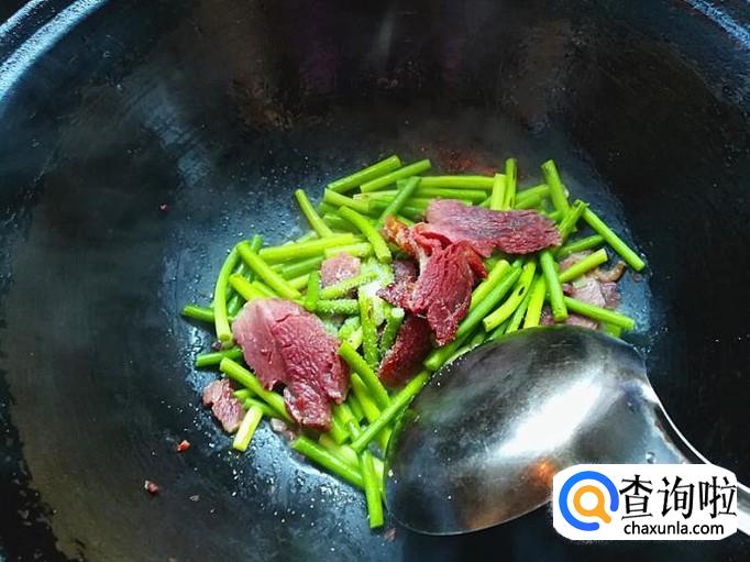 装盘,一道好吃又营养的牛肉蒜苔就做好了。