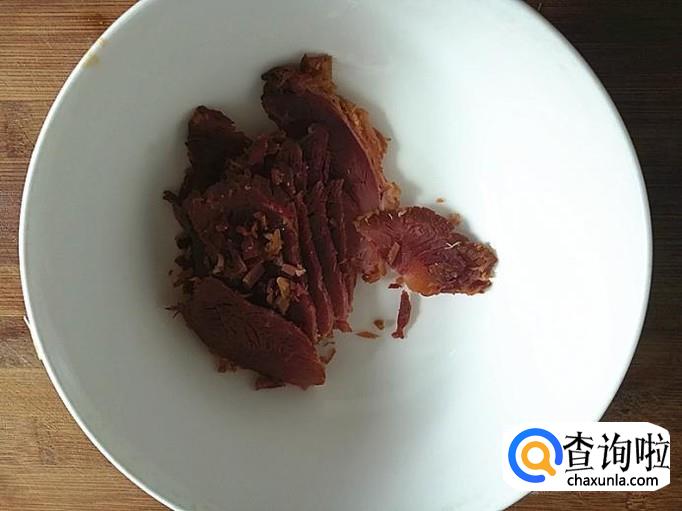 把熟牛肉切成片备用,根据吃饭的人数来定量,家里有三高的人,最好肉类还是不要吃太多,要不会影响身体健康哦。