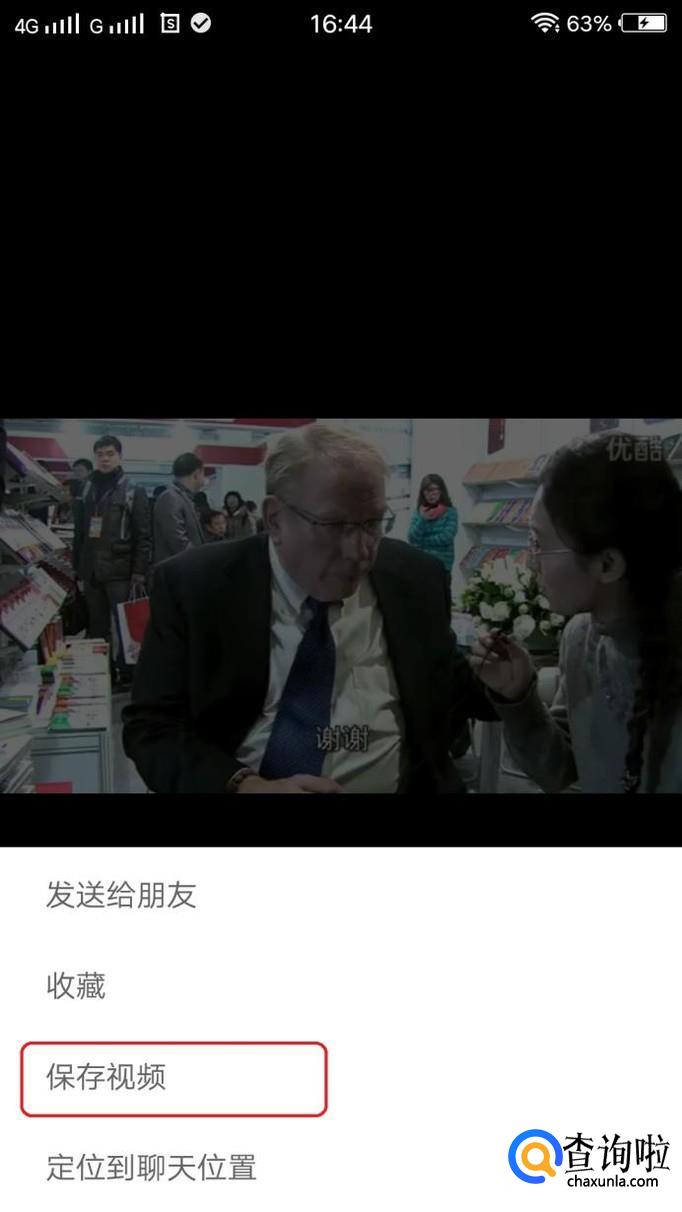 视频播放过程中,我们按住该视频,会弹出菜单,我们选择“保存视频”。保存完毕后屏幕上会短暂显示视频保存的位置,如图所示。