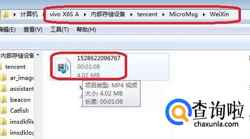 根据屏幕上的提示,手机连接电脑后,找到该文件夹,就能看到该视频,如图所示。