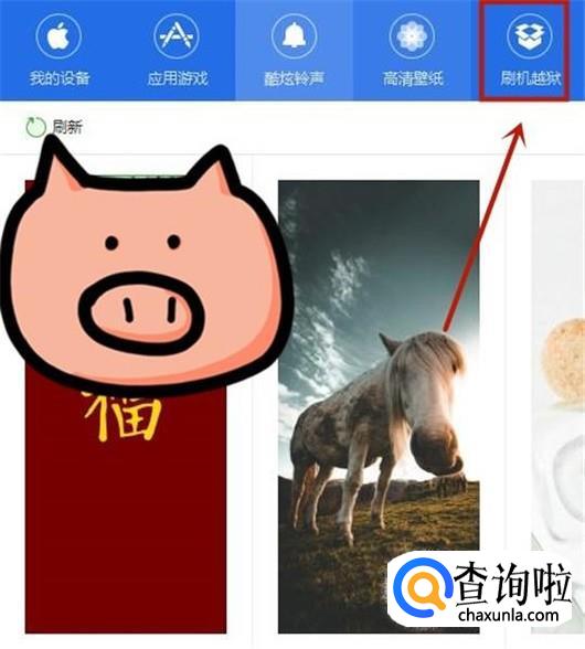 接着,点击屏幕右上方的刷机越狱,如下图所示。