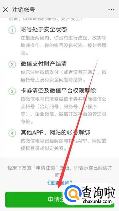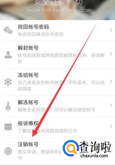 在“微信安全中心”页面,点击“注销账号”,如图所示。
