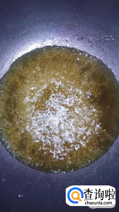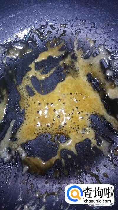 炒锅中放入五份清水,三份白砂糖,小火慢熬,熬出糖色后,再加入白开水。