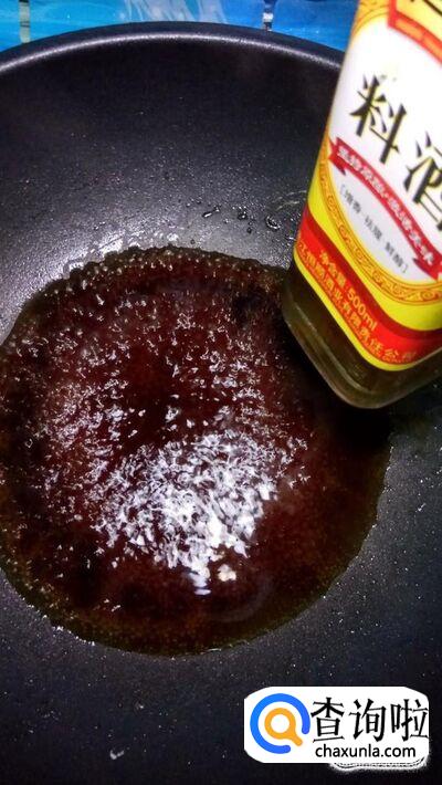 再放入一份料酒,两份酱油,四份陈醋,做好料汁儿。