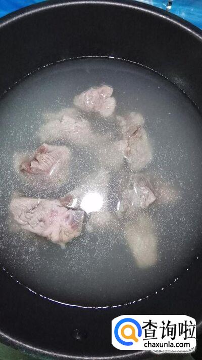 准备适量排骨,用清水洗净,然后放入锅中焯水,除去血沫。
