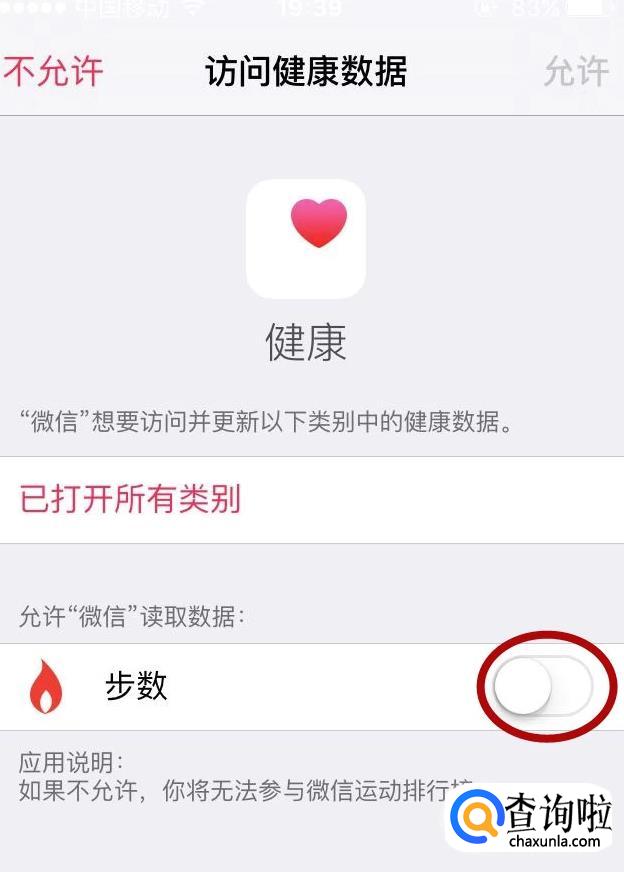 最后打开微信微信同步数据,允许访问数据,就可以显示运动步数了。