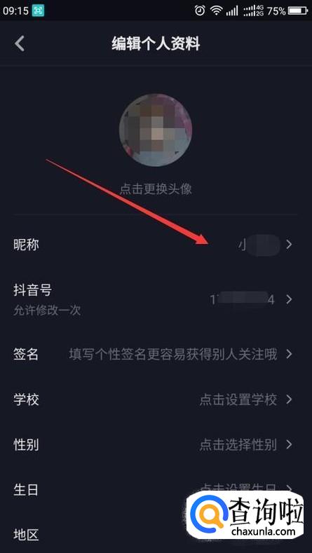 进入编辑个人资料,点击呢称,进入修改呢称界面,在呢称后面点击。