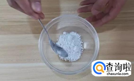 准备一个容器,在里面加入一勺的面粉。