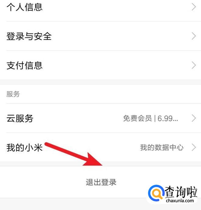 进入后,可以看到‘我的小米’也是在这里的,点击下方的‘退出登录’。