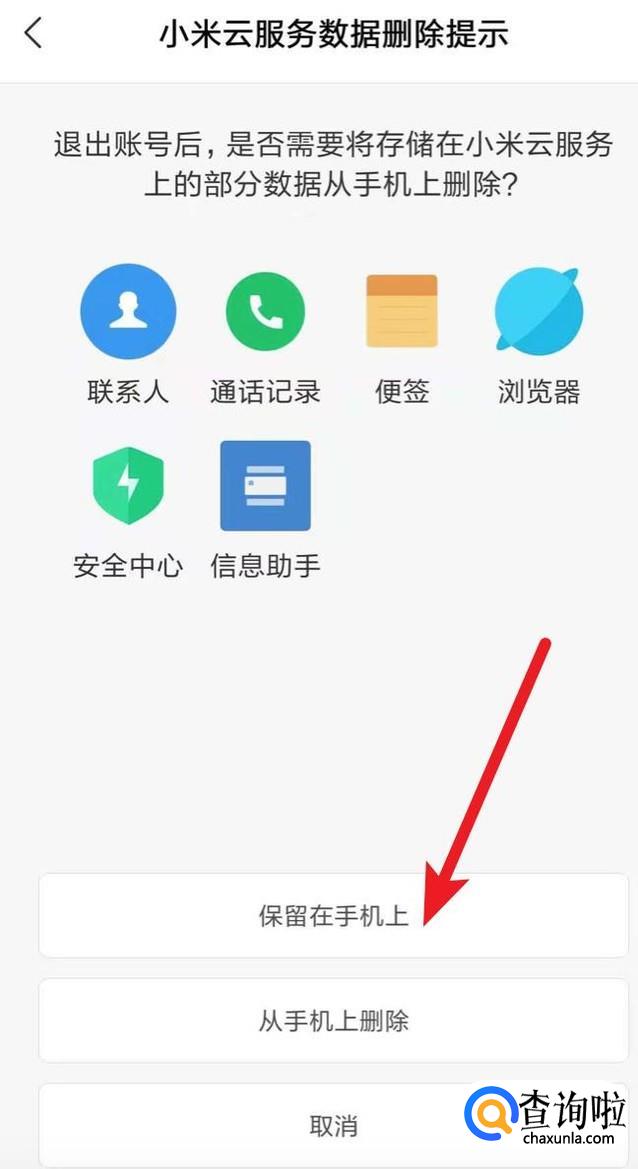 点击后,来到这个页面,选择是否保留数据在手机上,一般我们都是选择第一个,保留在手机上的。点击这个按钮就可以了。