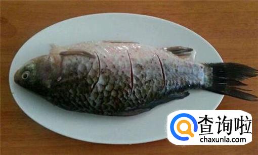 制作邮亭鲫鱼比较简单,首先,我们将大小合适的鲫鱼洗净,要刮去鲫鱼内部的肠衣,将鲫鱼改花刀备用。
