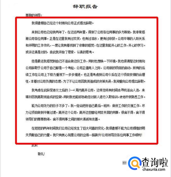 正文首先要写出书信辞职的内容,其次叙述递交书信辞职的具体理由。最后要写出自己递交辞职信的决心和个人的具体要求,希望领导解决的问题等。
