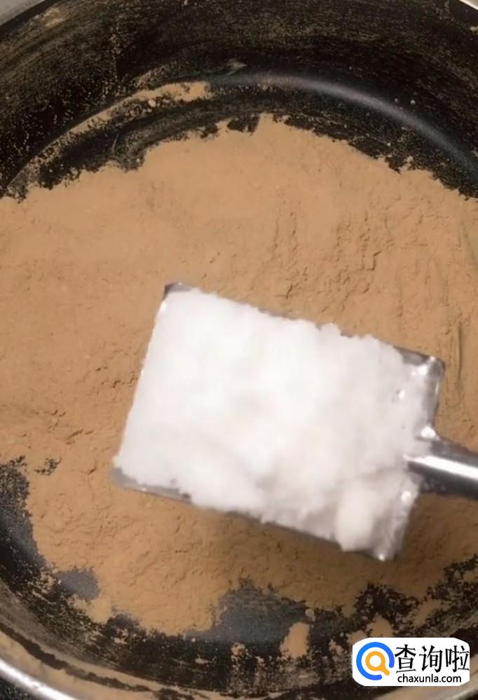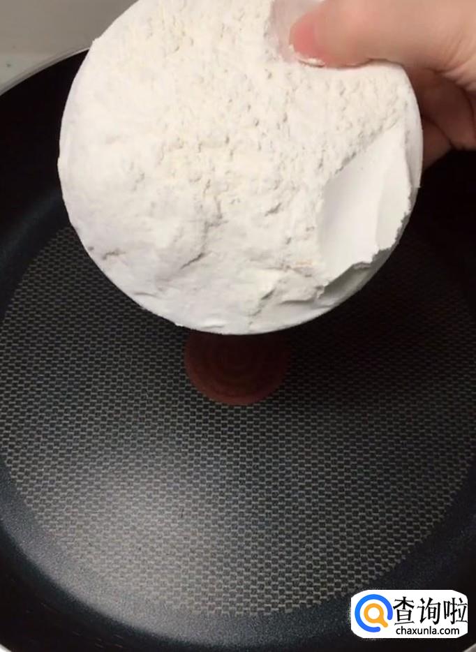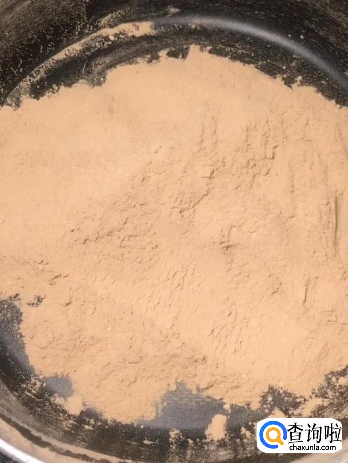 首先我们在一个干净的锅中倒入一碗面粉,开小火,炒至微微发黄
