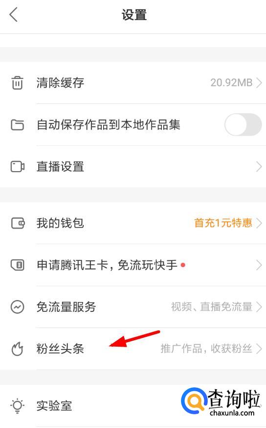 在界面中,找到并点击“粉丝头条”。