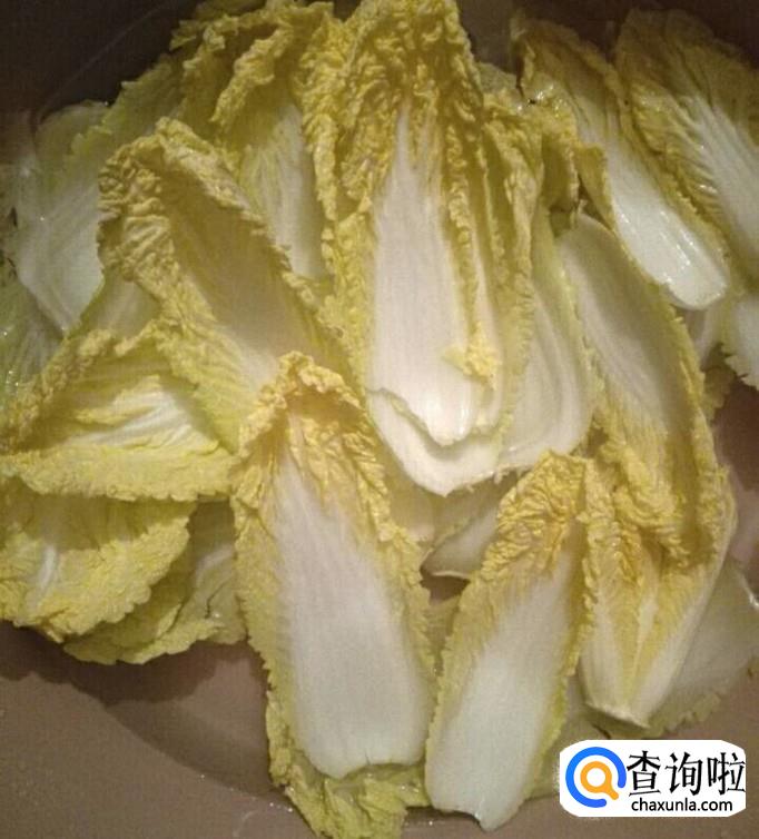 将白菜叶摘下,放水中浸泡一会儿,然后清洗干净。