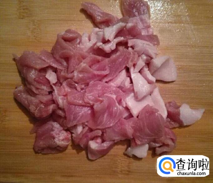 猪肉放水中浸泡一会儿,捞出将猪皮切掉不要,猪皮影响饺子的口感。