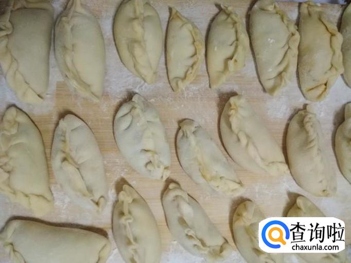 挖一勺馅,将其放到饺子皮中间,两边的饺子皮合起来先将中间捏紧,再把两边捏紧,然后在其它地方捏褶子,饺子就包成了。
