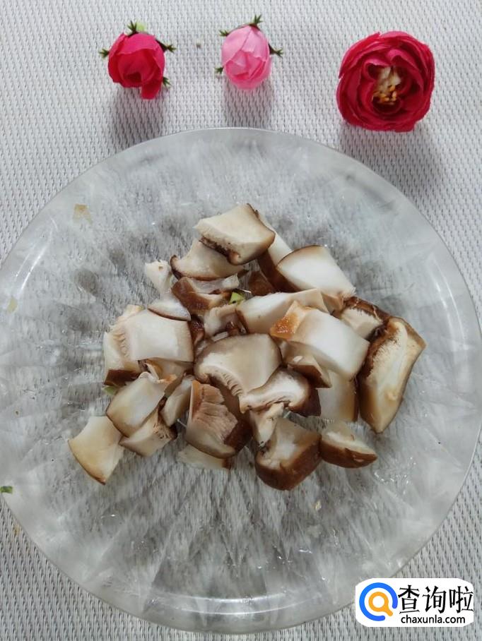 准备适量香菇,洗净后切成小丁,放入盘中备用。