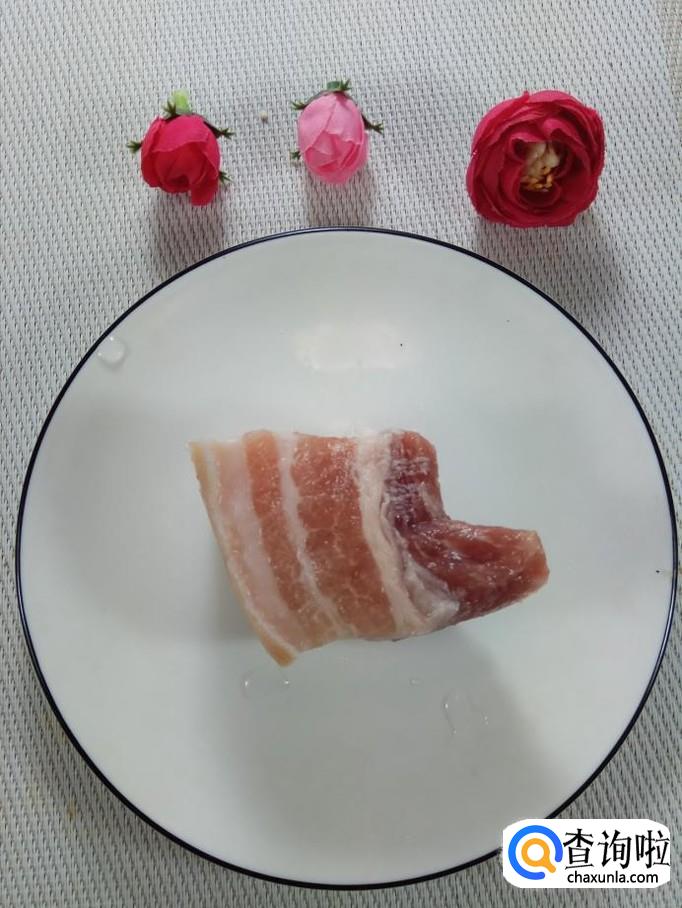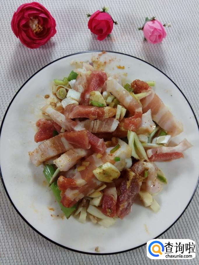 将腌制好的五花肉放在最上面。