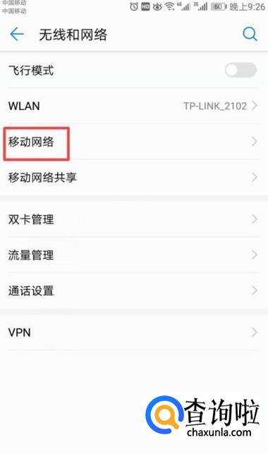 弹出的界面,我们点击移动网络;