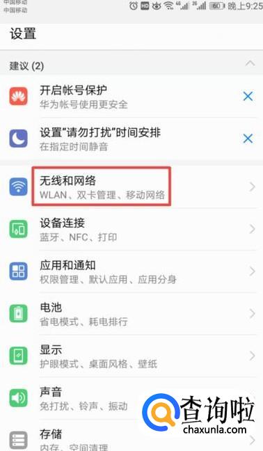 进入设置后,我们点击无线和网络;