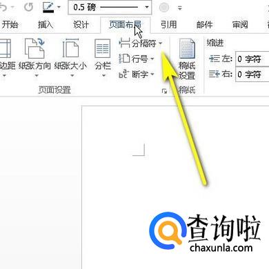 鼠标移到菜单栏这里,点击“页面布局”;下面展开相关的功能组。再点“分隔符”的下拉按钮。