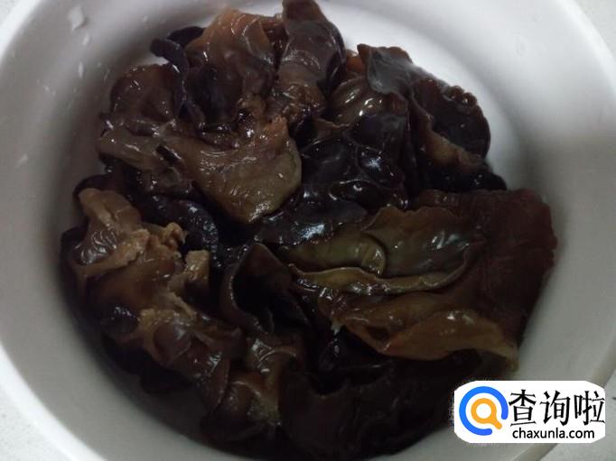 用温水快速泡发木耳,把泡发好的木耳收拾清洗干净,控干水分。