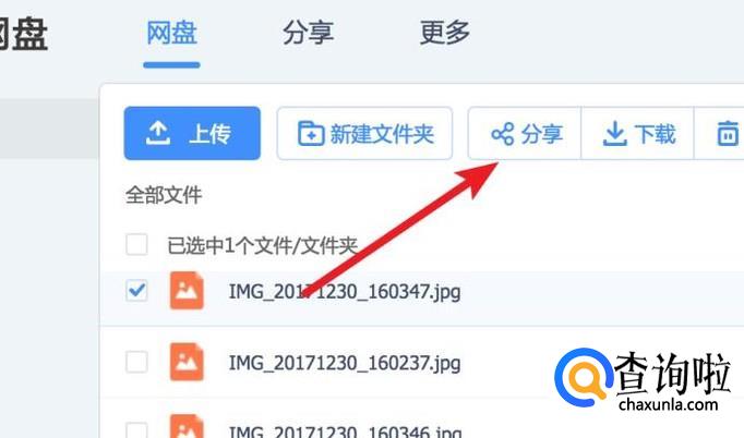 点击选中要分享的文件后,在上方就可以看到有一个分享链接了,点击它。
