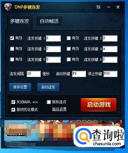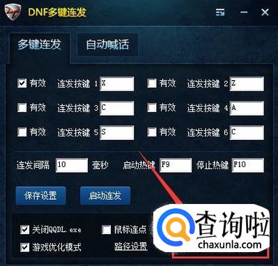 在DNF多键连发界面会看到连发按键设置好后点击启动连发,如图