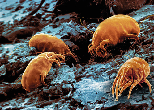 尘螨大致分为屋尘螨、粉尘螨和欧尘螨,其中屋尘螨对人体影响最大,它们分布在毛毯、被褥、床垫、枕芯、空调、地毯、沙发等缝隙处,是我们生活中每时每刻最容易接触到的螨虫。