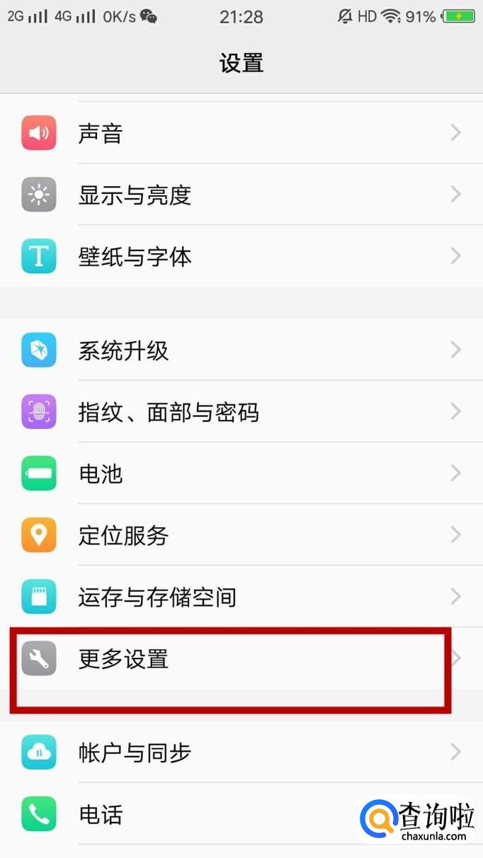 找到更多设置,然后点击进入,找到关于手机,点击并进入,如图所示。