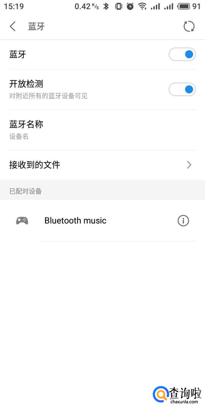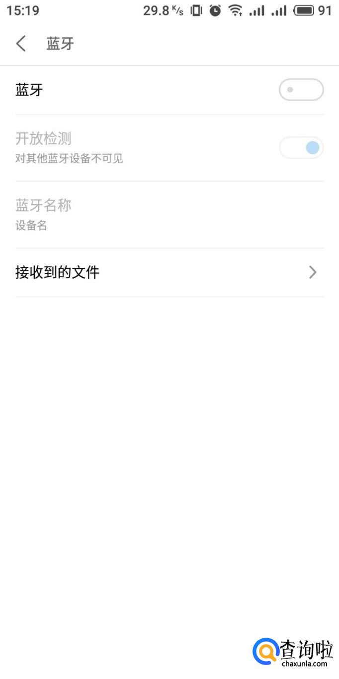 进入蓝牙设置界面,将蓝牙右侧的滑块开启,以打开手机蓝牙功能。