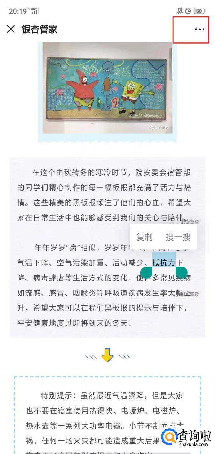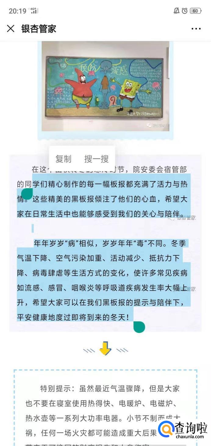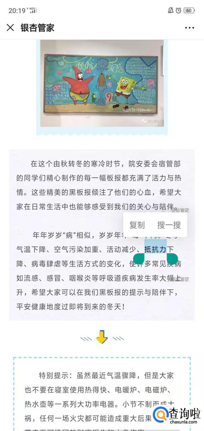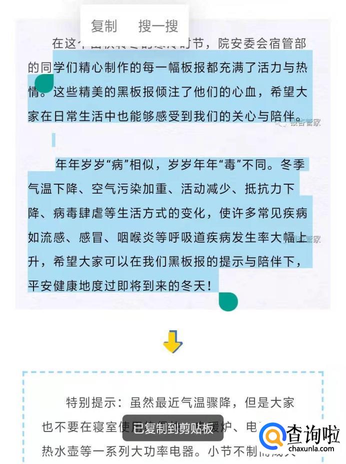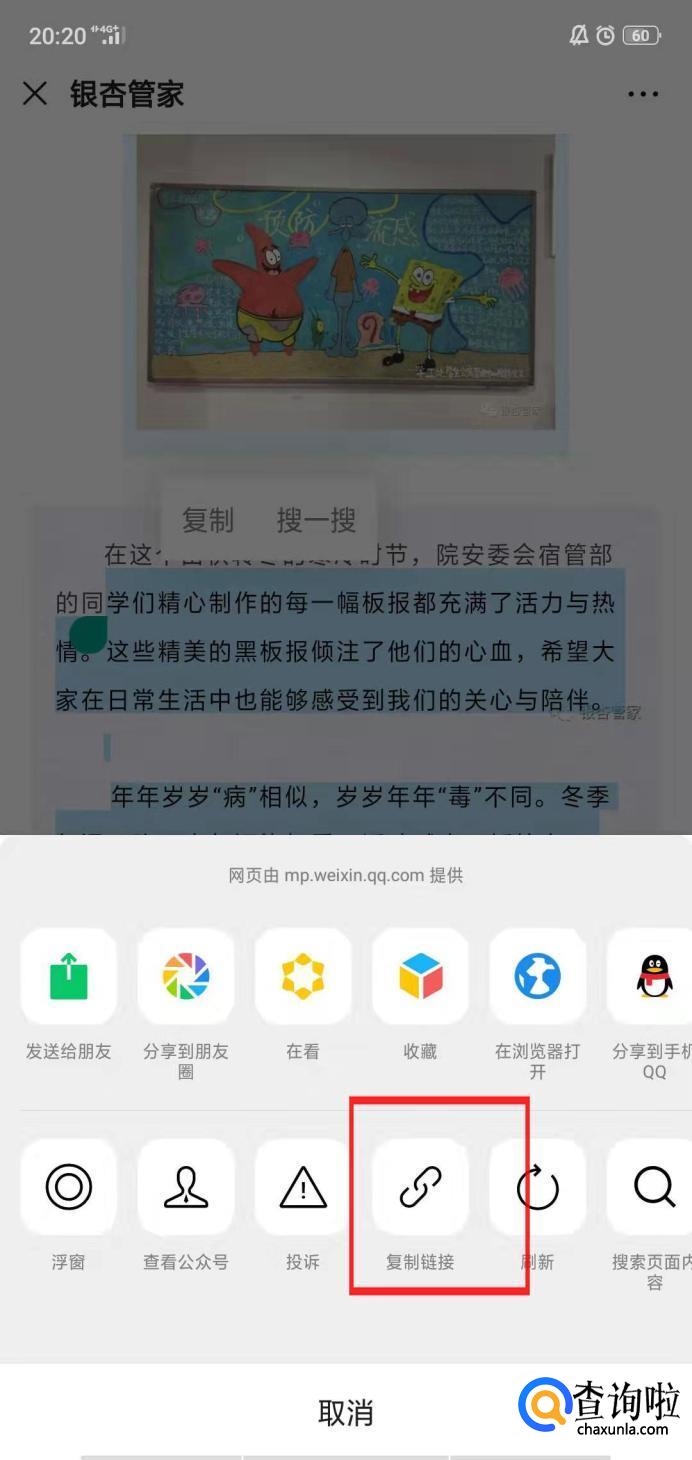 如果我们想要复制链接中的文字,长按文字会出现复制的选项。